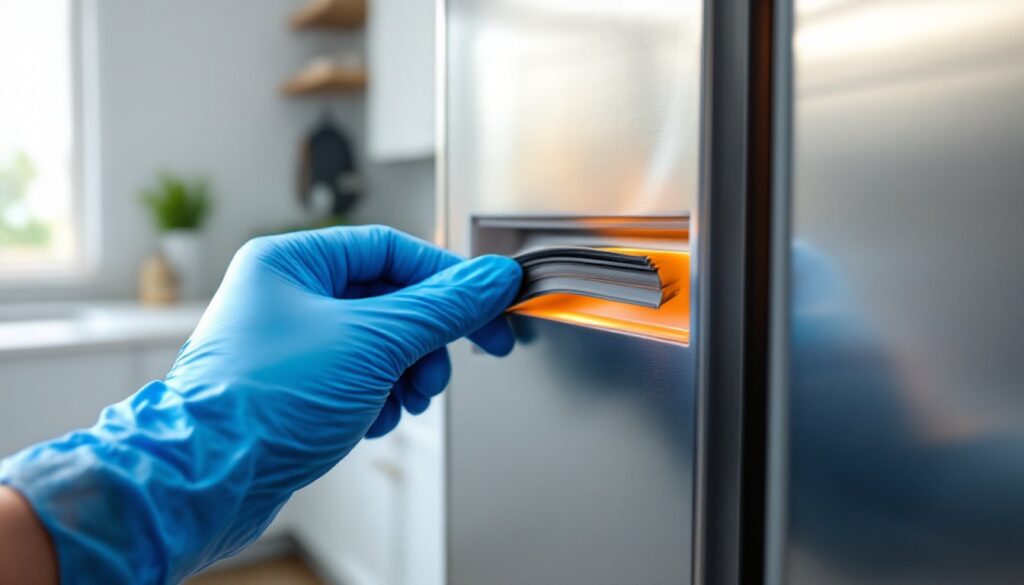 Check and clean door seals monthly. Wipe the rubber gasket with a damp cloth to remove food debris and mold. A clean seal maintains contact with the door frame, keeping cold air inside. If you spot cracks or notice cold air leaking, replace the seal before the problem spreads.